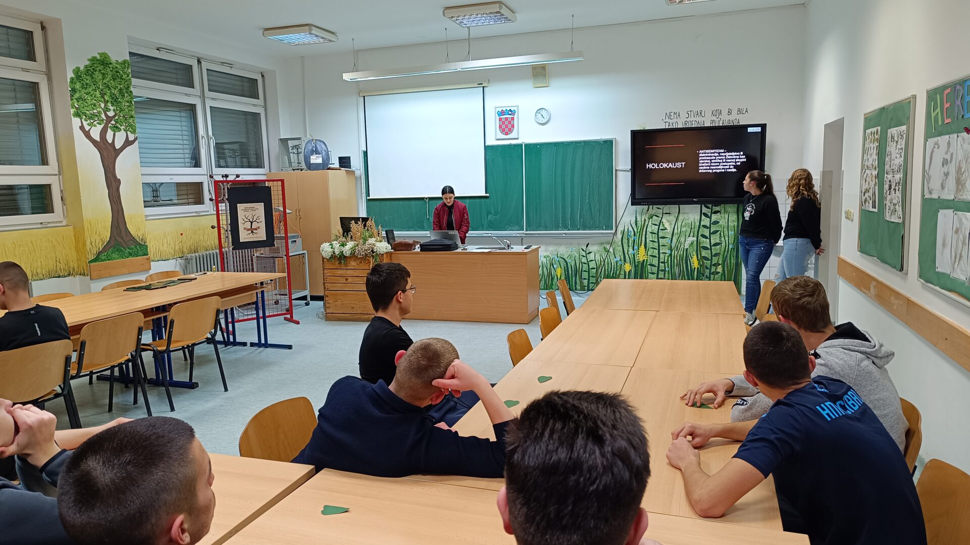 Učenici koji su ujedno i članovi skupine Mladi povjesničari svojim izlaganjima u sklopu nastave povijesti i pod voditeljstvom nastavnice povijesti upoznali su naše ostale učenike s povijesnim činjenicama, osobnim pričama preživjelih, ali i posljedicama holokausta.